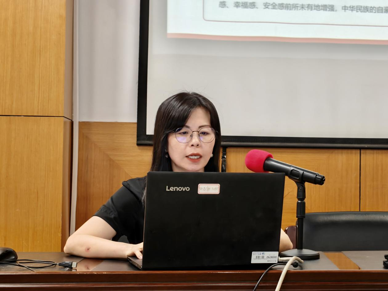 讲座伊始,李梓以民族政策为引,介绍了中华民族共同体的内涵和发展史,并明确了新时代该如何铸牢中华民族共同体意识。她指出,在新时代背景下,坚持铸牢中华民族共同体意识,不仅彰显了我们在新时代民族工作中取得的辉煌成就,也体现了国家的发展离不开民族的团结,民族的团结为国家的发展提供了重要保障。随后,李梓提出新时代铸牢中华民族共同体意识的具体实践做法:要深刻领会和把握习近平总书记提出的四个“共同”;要推动全社会牢牢把握习近平总书记提出的“一部中国史,继续大力弘扬中华民族海纳百川的传统,推动中华民族走向包容性更强、凝聚力更大的命运共同体。最后,李梓要求同学们牢记中华民族是一个命运共同体,一荣俱荣,一损俱损,实现中华民族伟大复兴,需要各民族手挽着手、肩并着肩,共同努力奋斗。