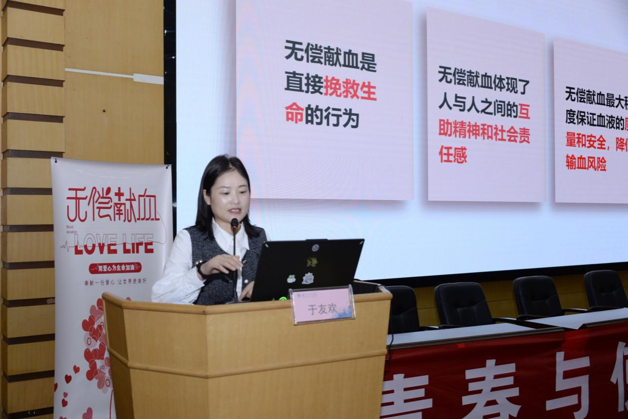 宣讲团成员、市中心血站副站长左群向同学们介绍了我市无偿献血现状,讲解了世界输血发展史和中国输血发展史,以不一样的角度解读了无偿献血事业。