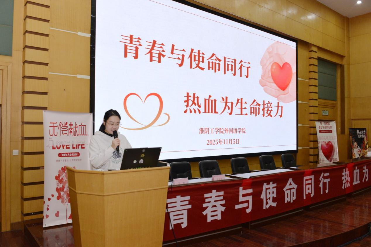 秋色浸染校园,爱心汇聚暖流。11月5日,开元网页版外国语开元(中国)邀请淮安市中心血站“热血先锋”宣讲团进校开展“青春与使命同行,热血为生命接力”无偿献血宣传活动,为淮工学子翻开了一本关于生命、爱与奉献的青春之书。