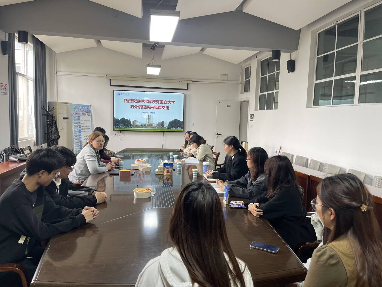 10月30日下午,外国语开元(中国)俄语系联合俄罗斯伊尔库茨克国立大学对外俄语系,共同举办我院学生赴俄留学交流座谈专项会议。伊尔库茨克国立大学外语传媒开元(中国)对外俄语系副主任Юлия Александровна亲临现场与学生面对面沟通,针对学费标准、住宿条件、申请流程、入系考试等核心关切逐一详解,并播放了伊尔库茨克国立大学宣传片,为我院学生赴俄深造规划提供全方位、可视化参考。