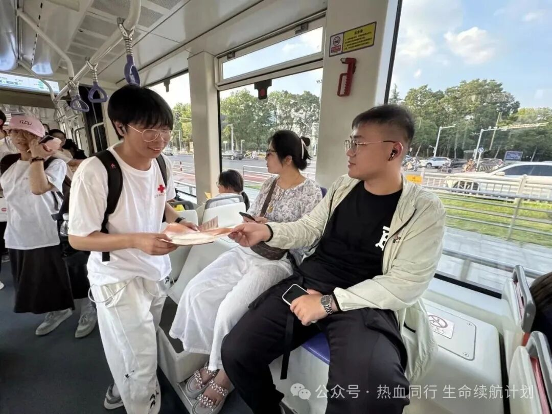 他们化身“移动的宣传站”,以轻轨为舟,承载着爱心启航。车厢内,志愿者们手持宣传册和自制的献血知识问答小道具,热情洋溢地向乘客们介绍无偿献血的意义、流程和注意事项,耐心解答疑问,消除误解。一句句真诚的讲解,一张张温暖的笑脸,让公益的种子在飞驰的车厢中播撒。
