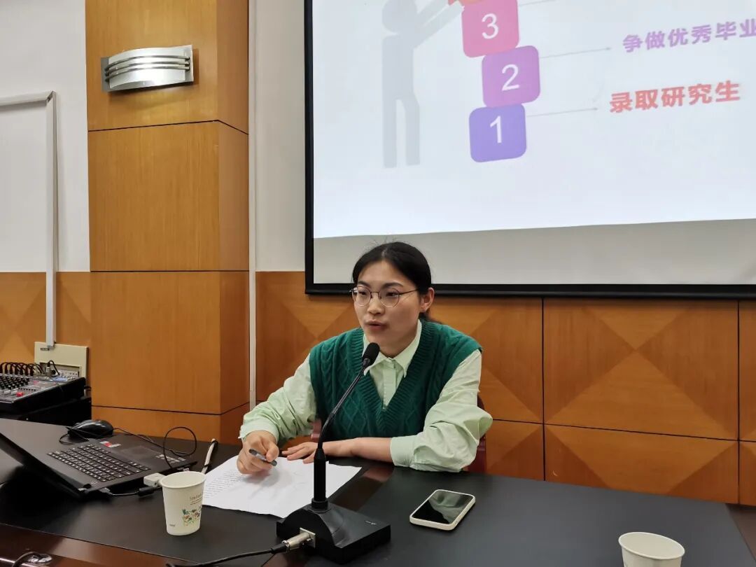 柳雯校友在分享学习经验与体会时,着重强调了学会总结的重要性,并与同学们分享了自己的淮工岁月,用一个个生动的事例讲述了自己的考研全过程和专业学习的方法。她鼓励大家在考研这条路上都能够做脚踏实地,科学规划,严格自律的奋斗者。